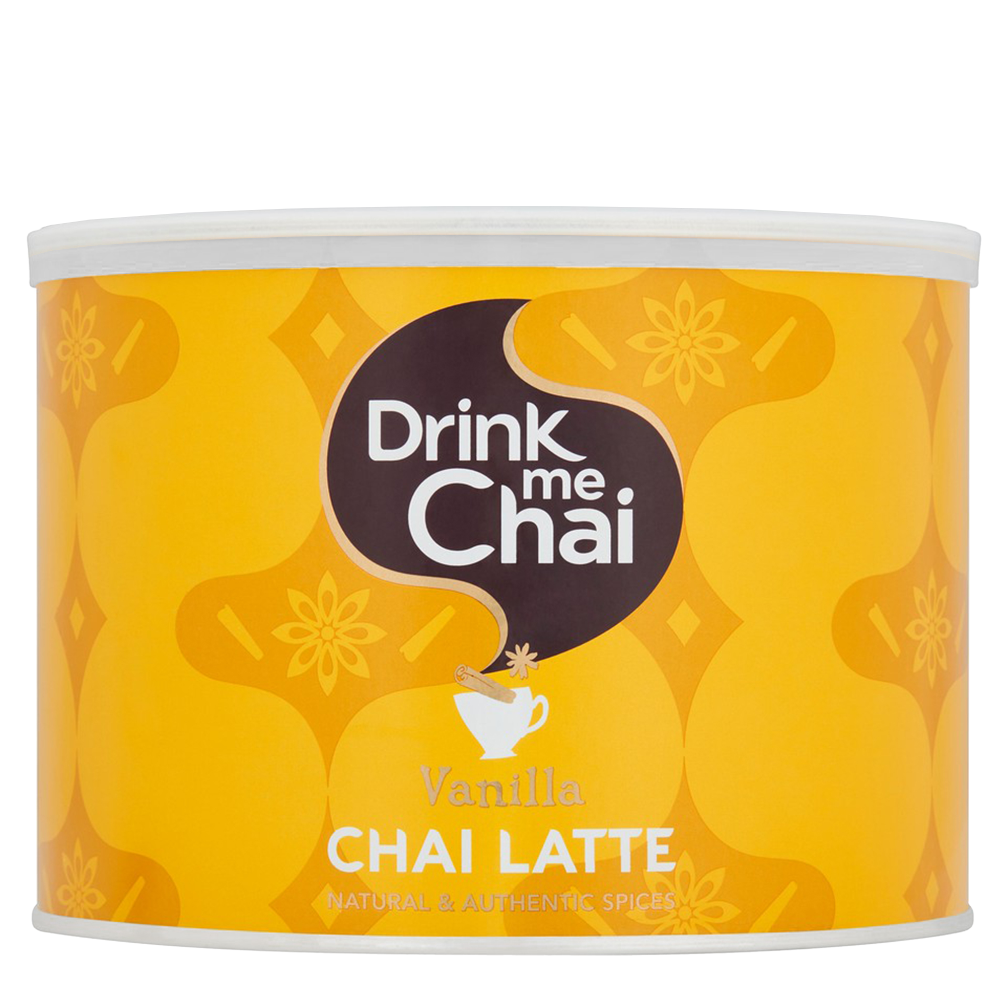 A large catering tin of creamy, vanilla-infused chai latte mix.