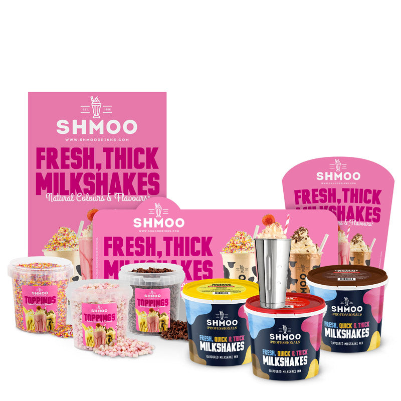 Want to sell Shmoo Thick Shakes? This starter kit paired with the Shmoo mixer is a great way to get started, all you need to do is provide fresh milk!